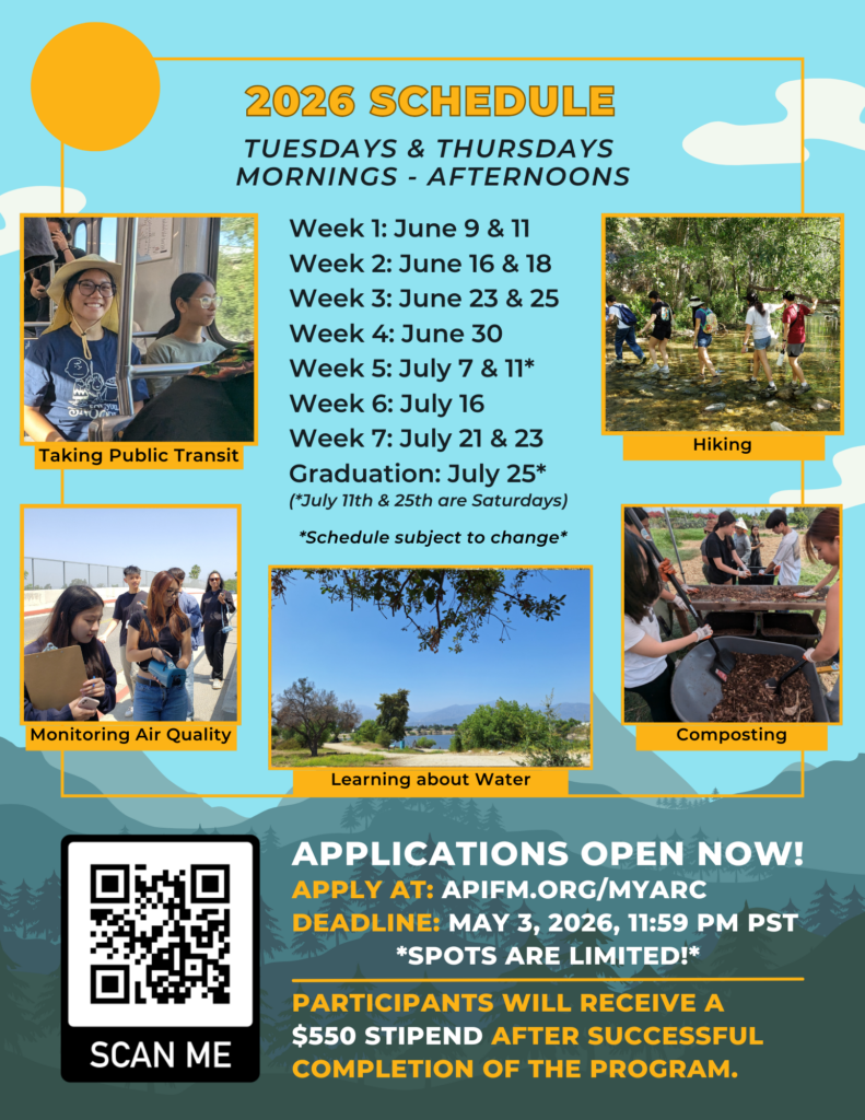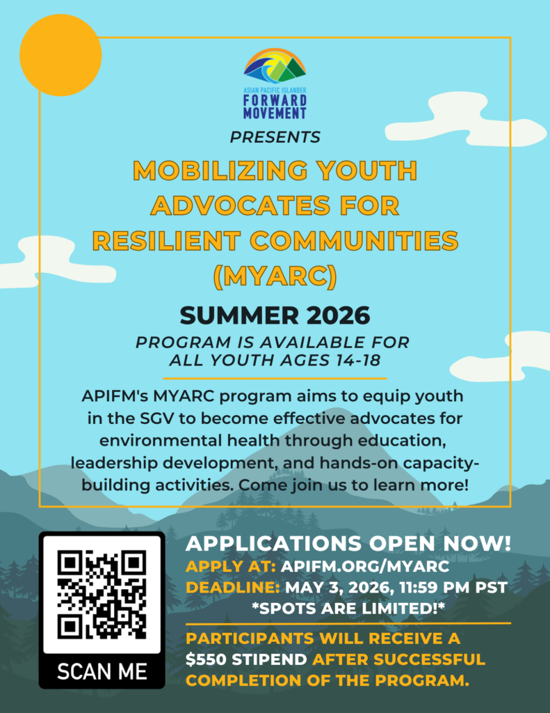 MYARC exists because API youth, especially those from disadvantaged communities, continue to be underrepresented in environmental advocacy and in the public decision-making processes that shape community health. Many SGV communities experience overlapping environmental burdens (air pollution exposure, inequitable access to green space, climate impacts, and built environment challenges), yet youth often have limited access to environmental justice (EJ) learning and limited pathways to practice civic participation in a supported way. MYARC addresses this gap by building EJ knowledge grounded in SGV realities, developing leadership and advocacy skills, and creating clearer on-ramps to civic participation and community action.